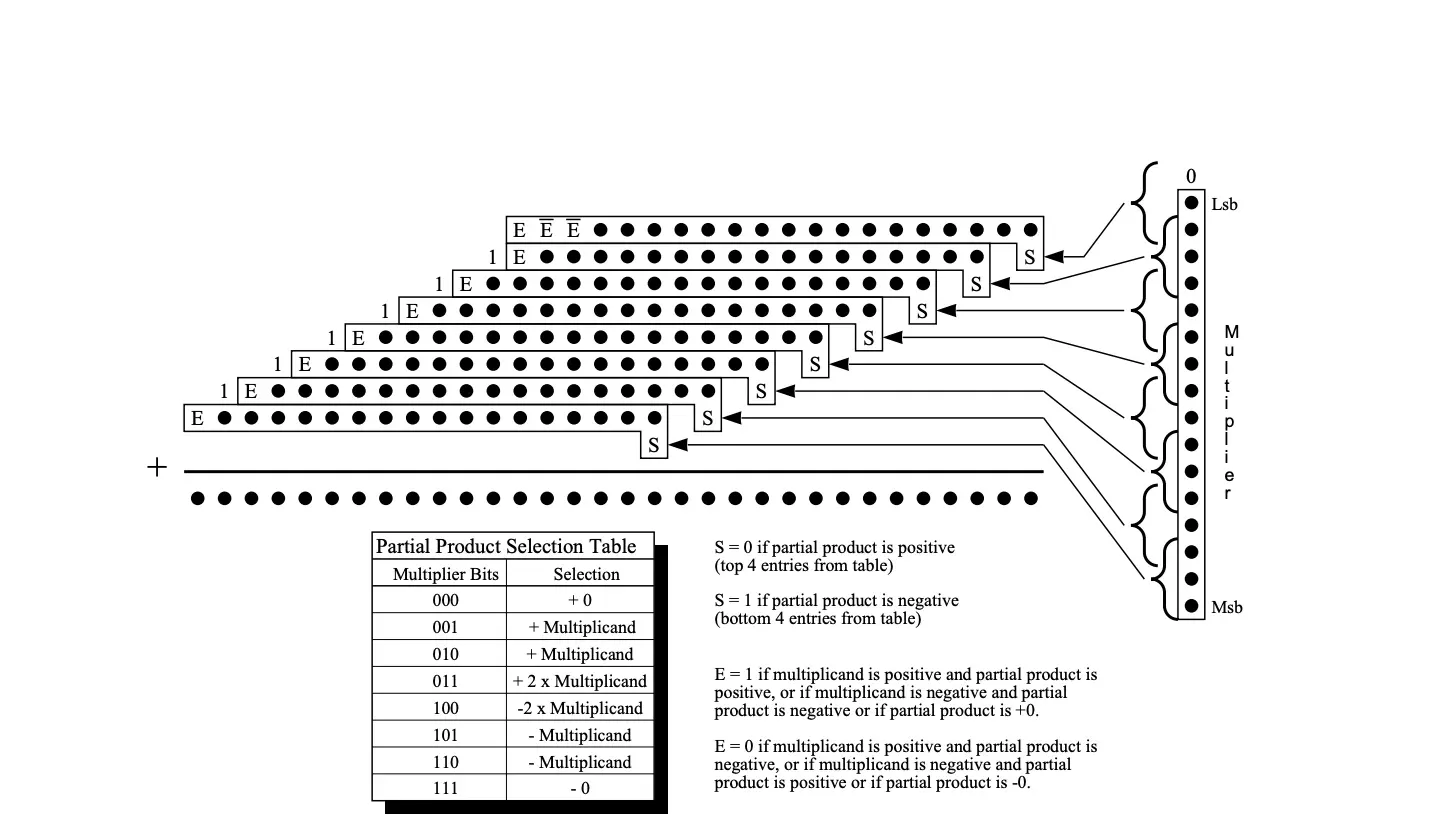- An all-ones partial product (~M for M=0, which is all 1s)